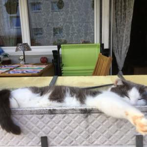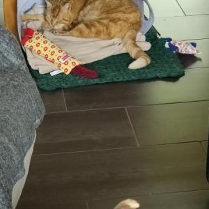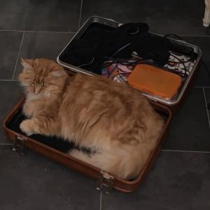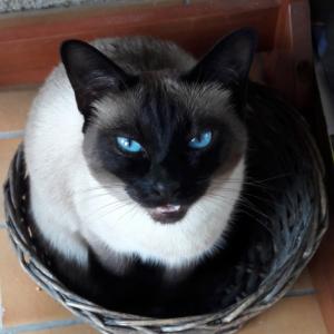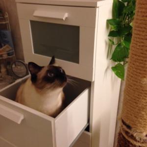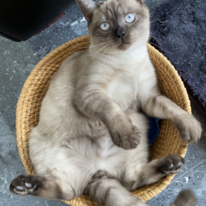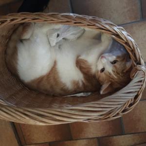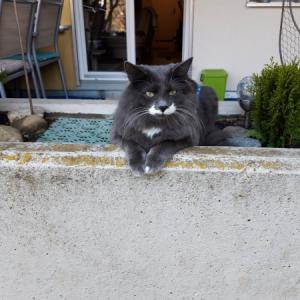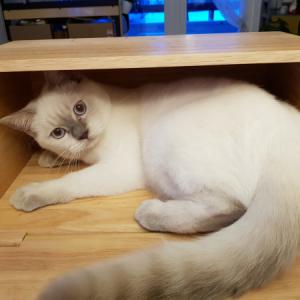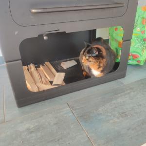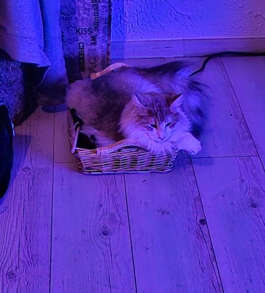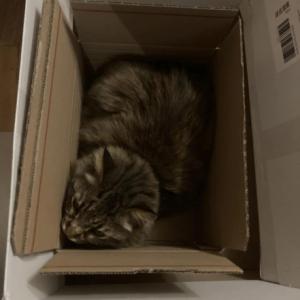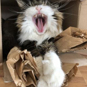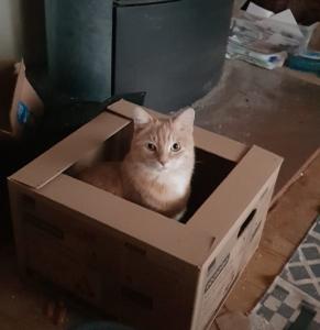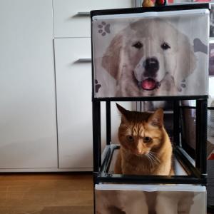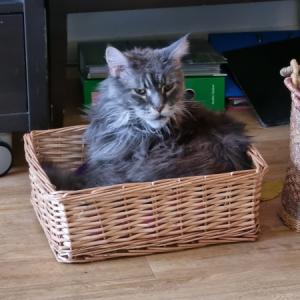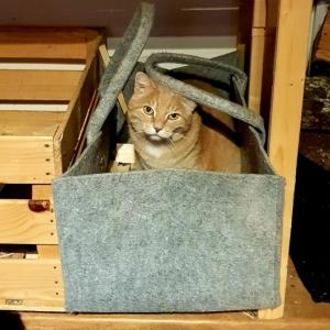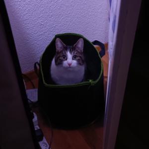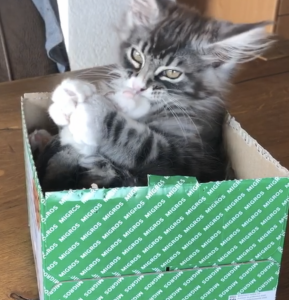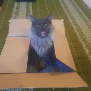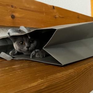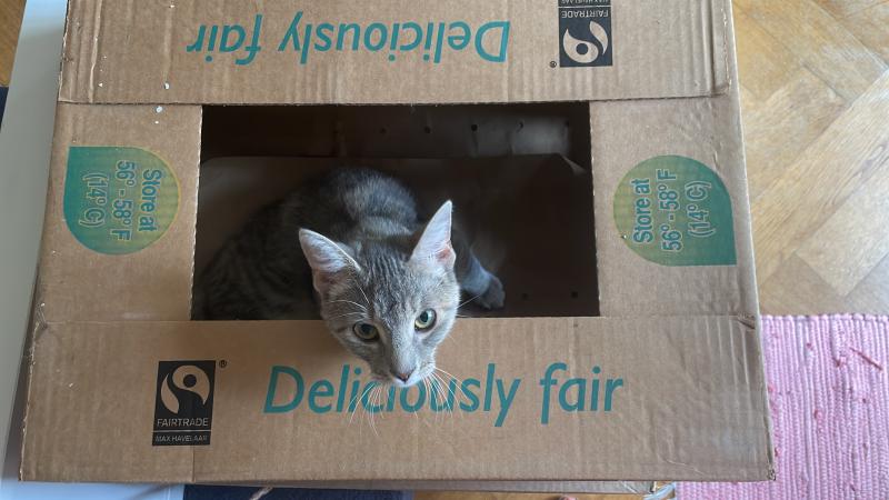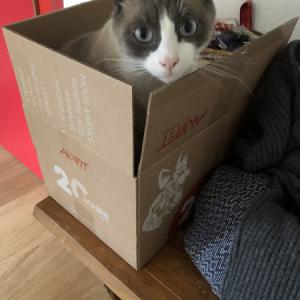 Darf ich vorstellen: Mein Kater Leo. Er zwingt sich täglich in sein enges Böxli um mich beim Homeoffice zu unterstützen.