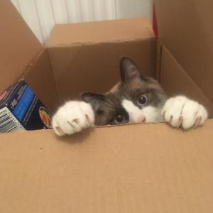 Auch Grace liebt Kartonschachteln über alles. Am liebsten so klein, dass sie kaum Platz darin hat.